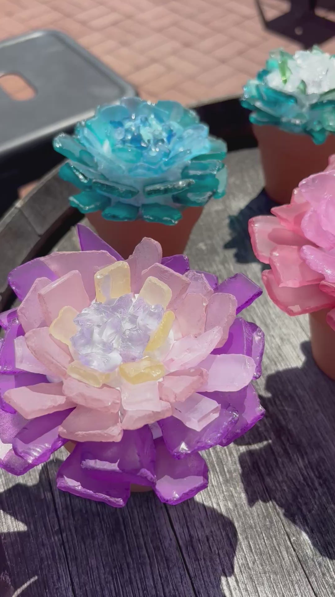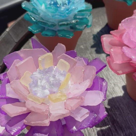 Each guest will receive 3 small terra cotta pots to create their own unique succulents made from glass! Each pot measures 3" in diameter. All tools, supplies and materials are provided - just bring yourself and your creativity!